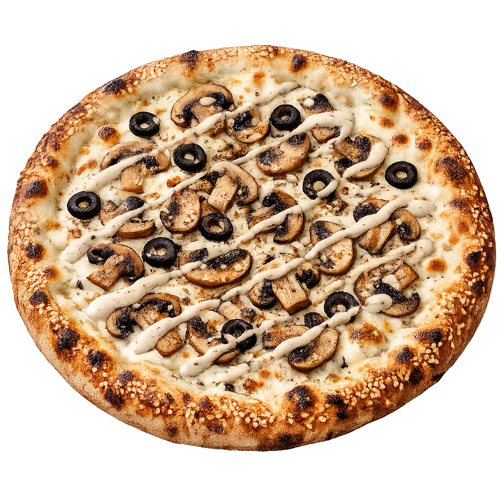 Mit Käse, Champignons, Oliven, Sesam und Trüffelsoße