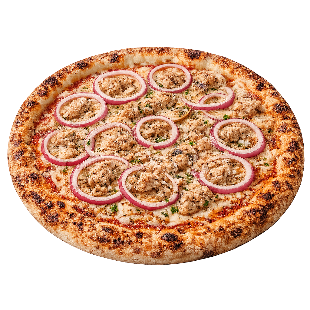Mit Tomatensoße, Käse, Thunfisch und Zwiebeln